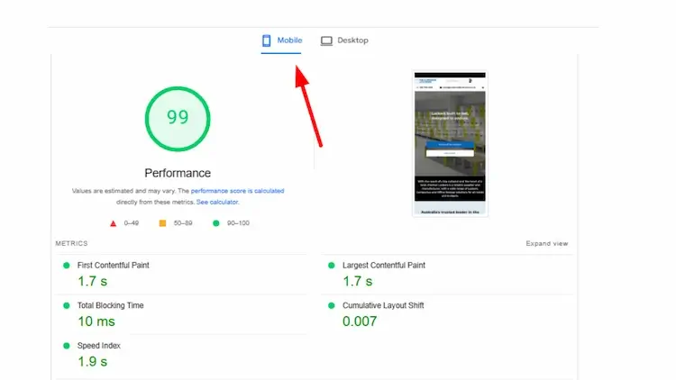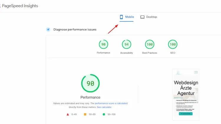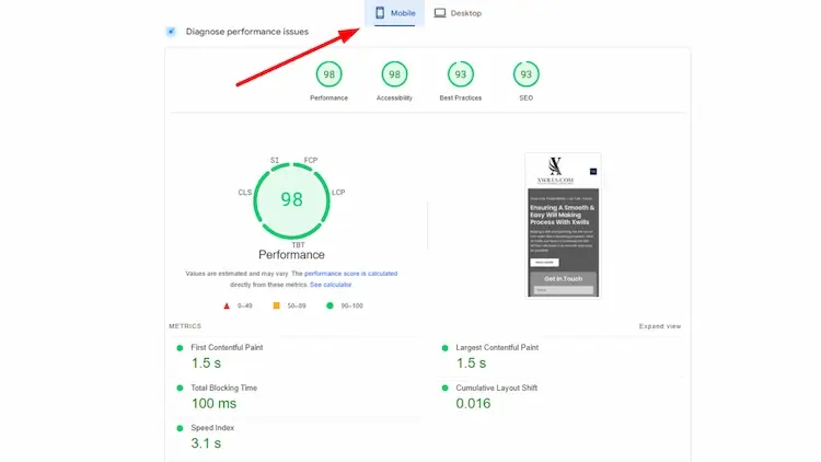 Basta inserir o link da página, normalmente a página início, e pode verificar a desempenho no telemóvel e no computador.
